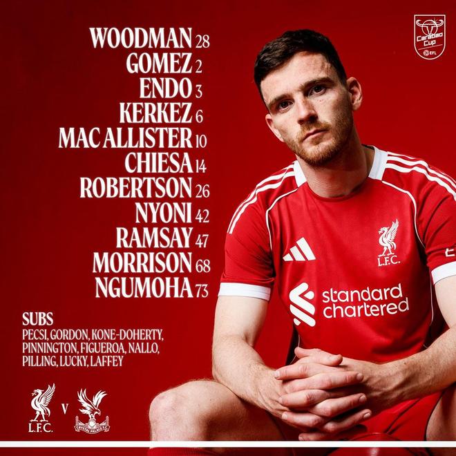北京时间10月30日3:45,英联杯第四轮继续进行,利物浦坐镇安菲尔德球场迎战水晶宫,本场主裁判为克雷格-鲍森,赛前双方首发出炉。